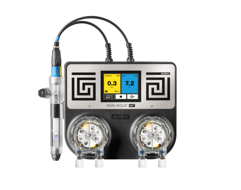Compact electrolyzer device for automatic pool water treatment with internet connection.